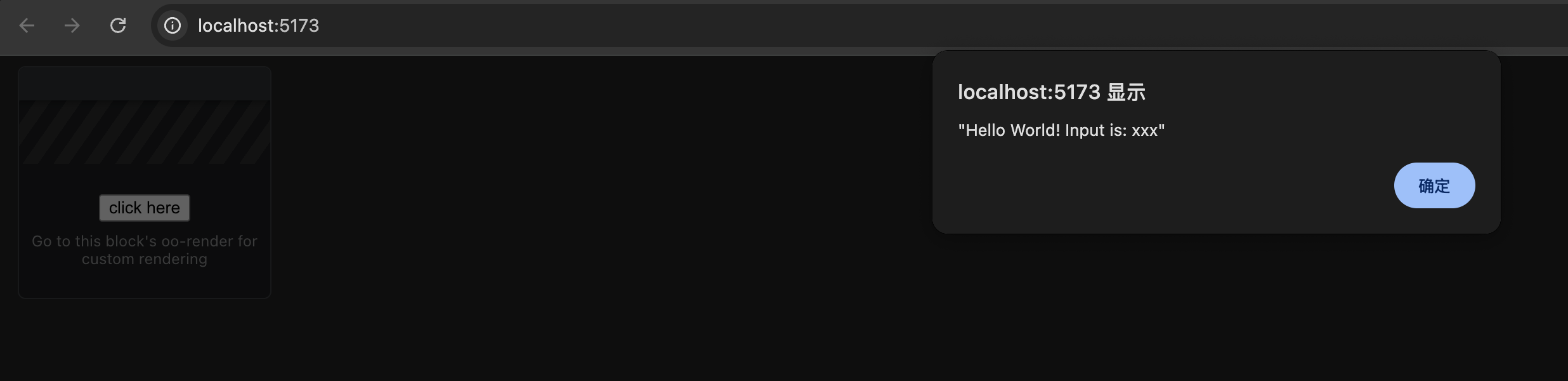 Clicking the button will show the content sent by the Block code: