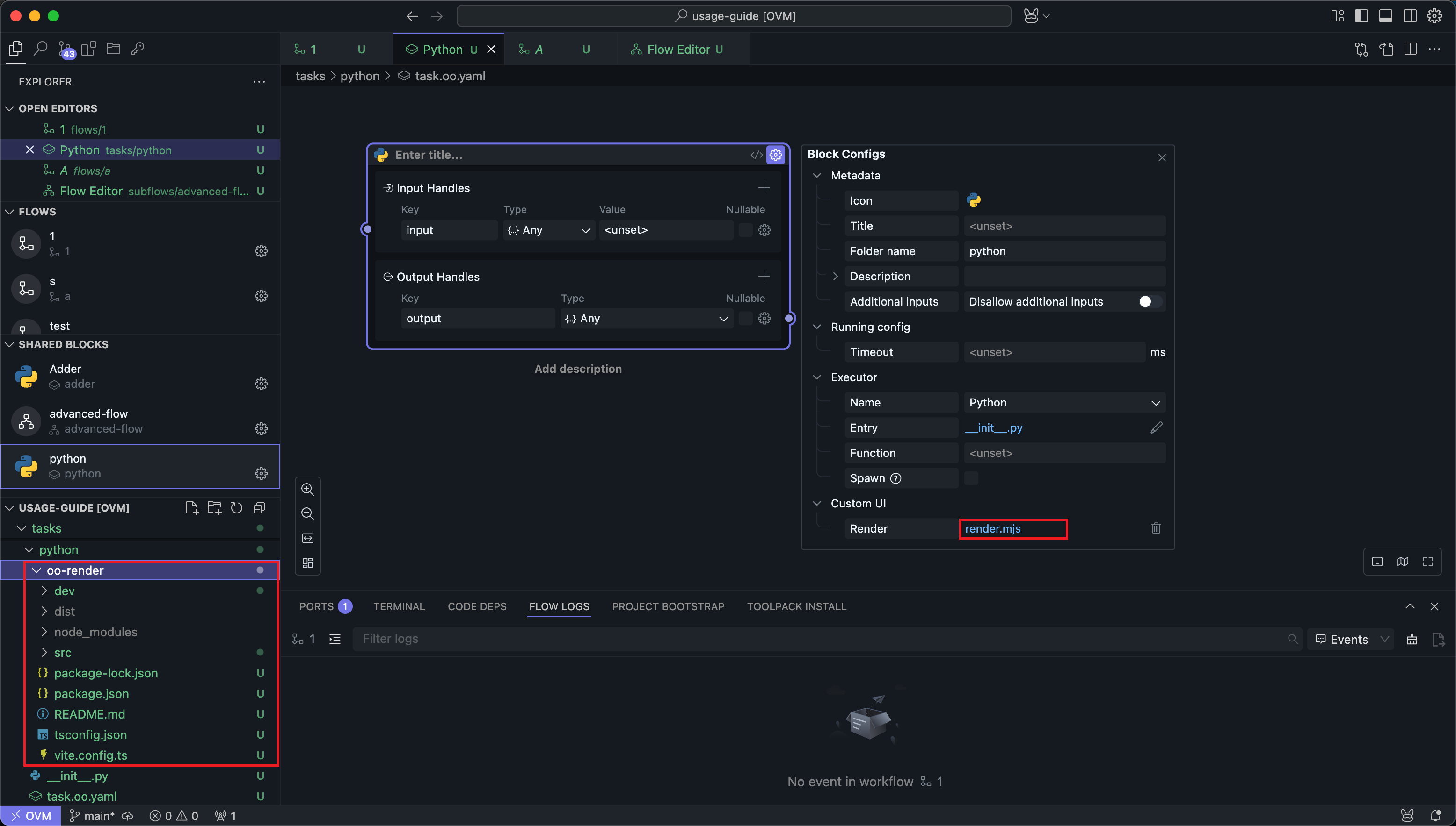 This experimental feature is still under development. While we will continue to improve the user experience in future versions, please note that newer versions of OOMOL Studio may not be compatible with custom rendering code from previous versions. If you encounter issues with custom rendering after upgrading OOMOL Studio, please rewrite your custom rendering code according to the version update logs.