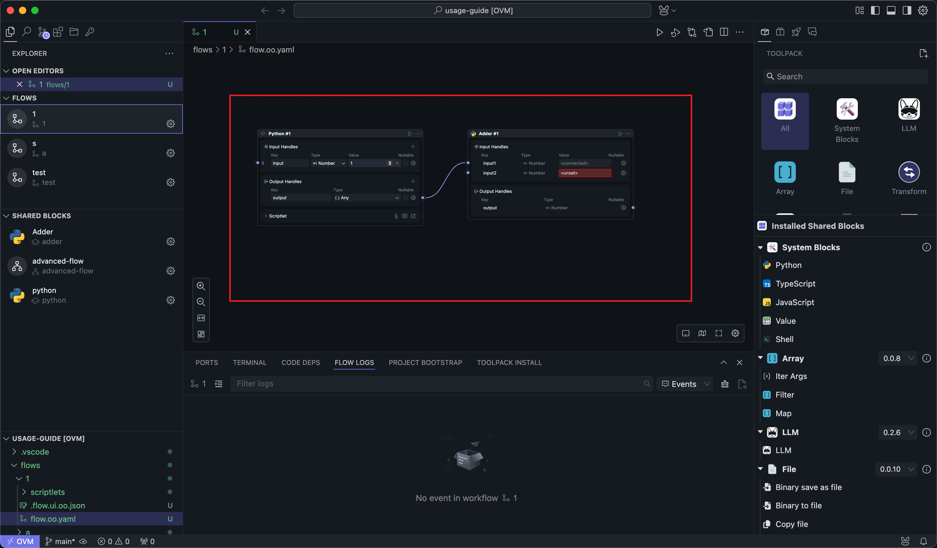 When you place one or more Blocks in the Flow editor: